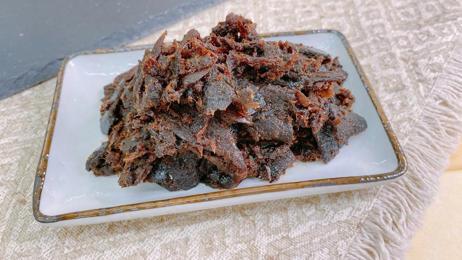 たとえば、父の日ディナーに煮物や和風ステーキなどを用意し、仕上げに少量の舞昆を添えるだけで、家庭料理が料亭のような味わいに。